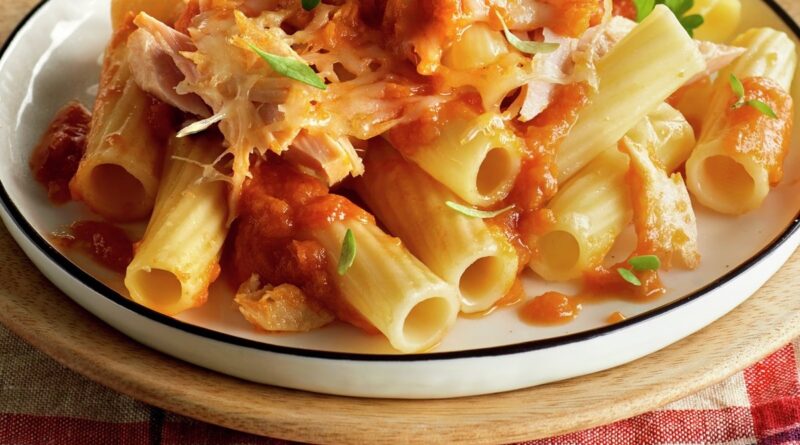 Hoy he preparado una receta de macarrones blancos que lleva carne picada, atún, tomate, queso rallado, huevos, bacon, cebolla y especias.
