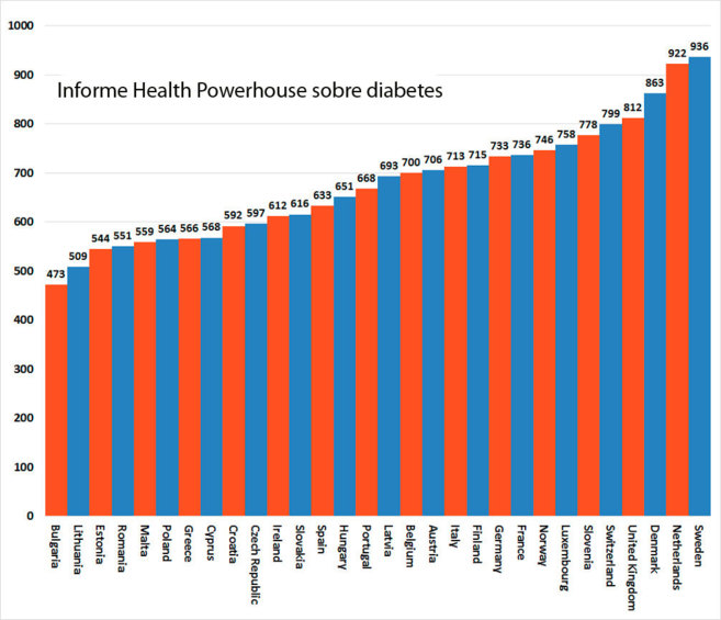 En este sentido, las elevadas tasas de obesidad, junto a los estilos de vida sedentarios o la baja tasa de control regular periódico de la glucosa entre los pacientes españoles influye en esa posición en la segunda mitad de la tabla (con 633 puntos frente a los 936 de 1.000 que obtiene el mejor colocado, Suecia).